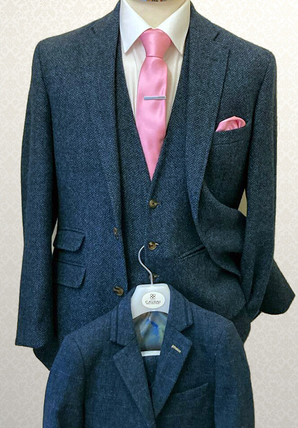 / Blue Tweed Tailored Fit Wedding Suit